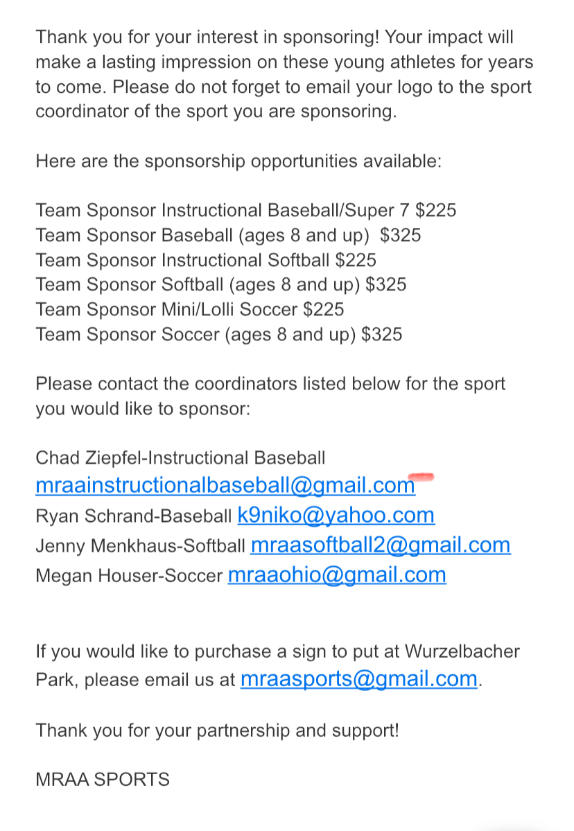 Signups for Softball, Baseball and Soccer will open up on 1/1/2026. Bring in the new year right and sign up early!